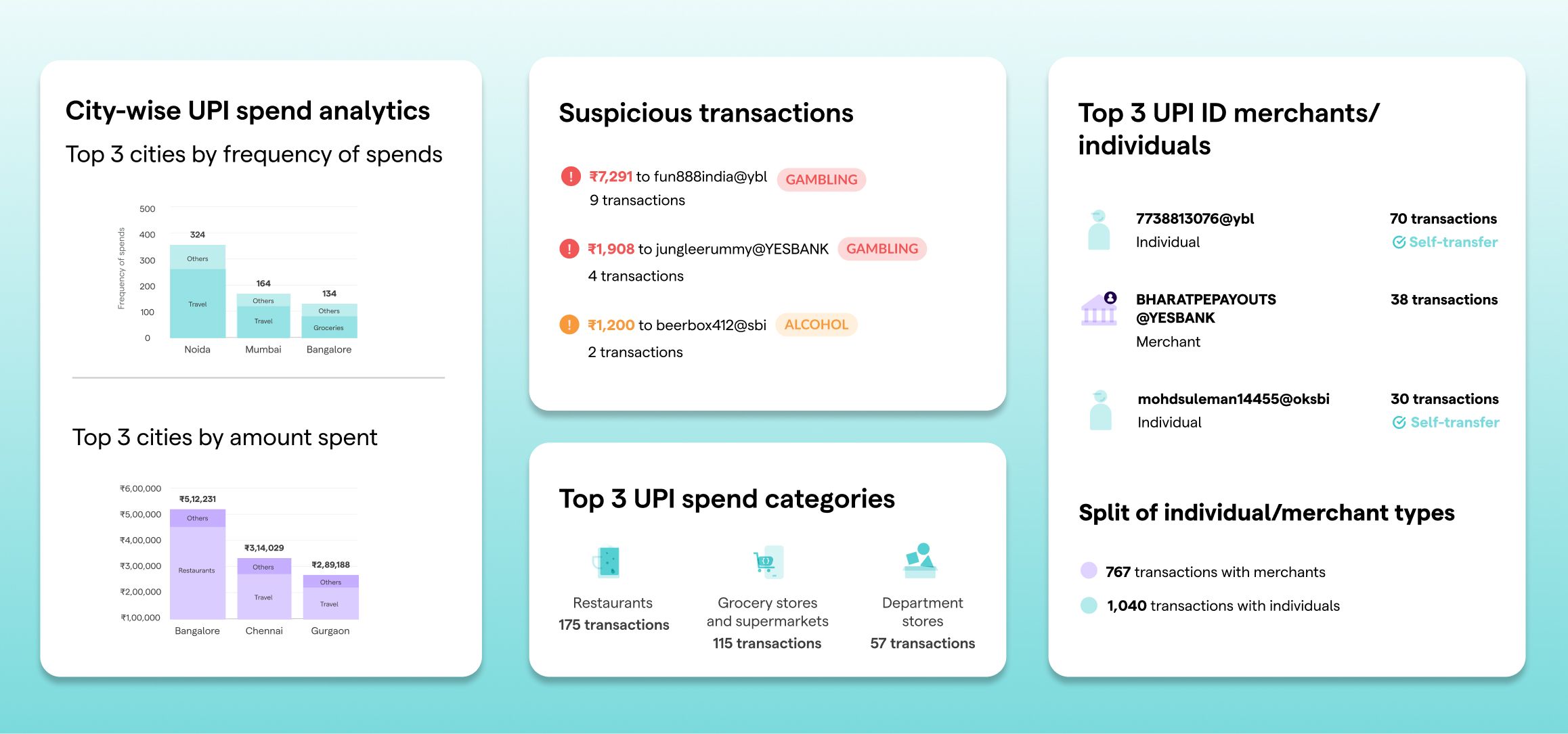 Below is a snippet of the insights you can derive through our APIs. While Fold isn’t using it right now, theoretically any PFM app can do this with UPI Insights.