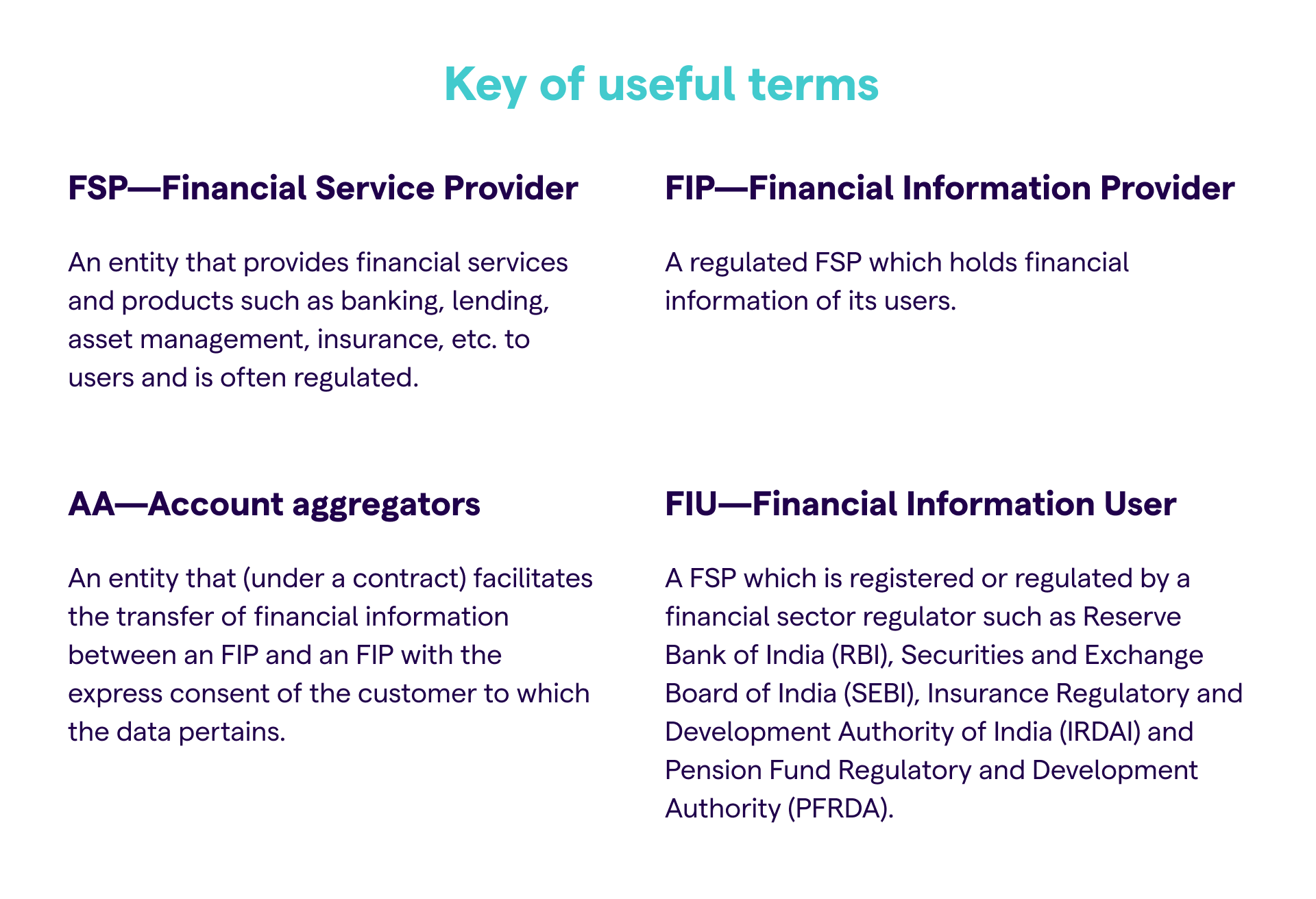 All in all, by transferring consent-based data from FIP to FIU through AAs, FSPs have a chance to provide flow-based credit, personal financial management tools, robo-advisory services and many more innovative financial products and services to a wider cross-section of people. As financial institutions get smooth consent-based access to financial data, they can offer better suited products to the user and improve access to such tools.
