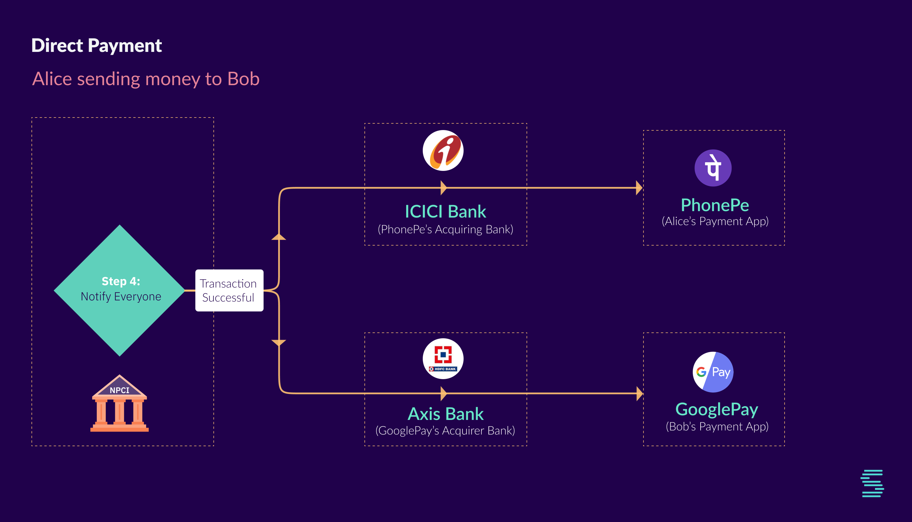 To understand how a transaction flows through the UPI infrastructure, let’s take an example of a direct payment and trace it from the beginning through the end.