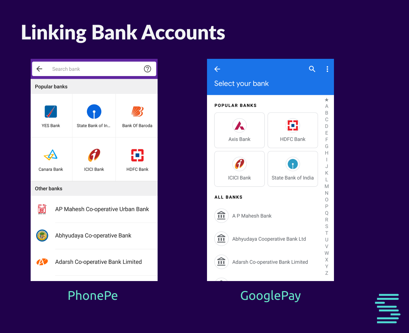 The next is to link the newly created UPI ID to a bank account. The list of all supported banks can be fetched from NPCI’s meta API listAccountProviders.