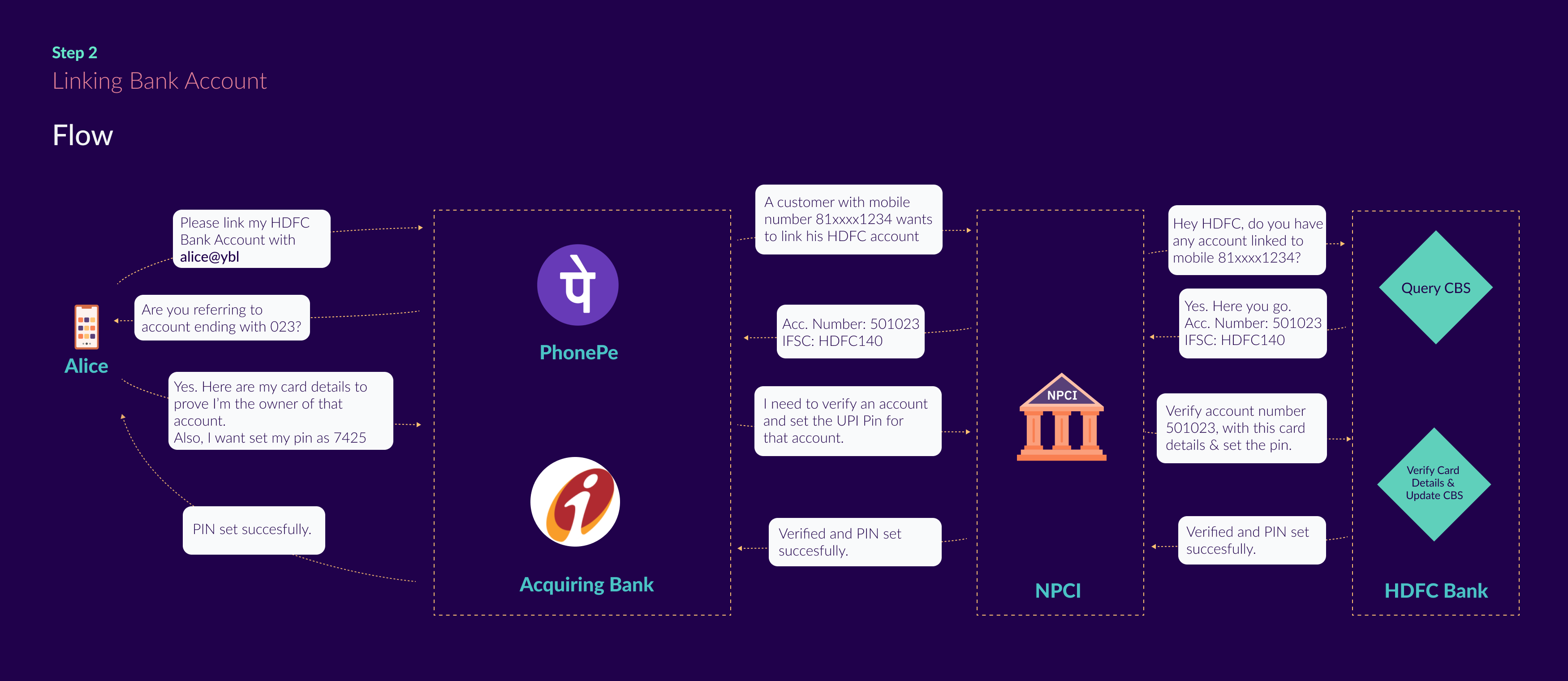 The Issuing Bank confirms that the account indeed is valid and returns the account information. Upon receiving the account information, the Acquiring Banks updates its database to map the newly created UPI to the received bank account information.